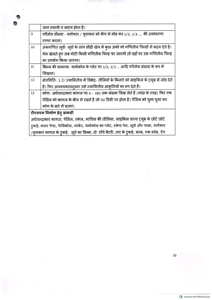 विषय : गणित (Maths TLM List)