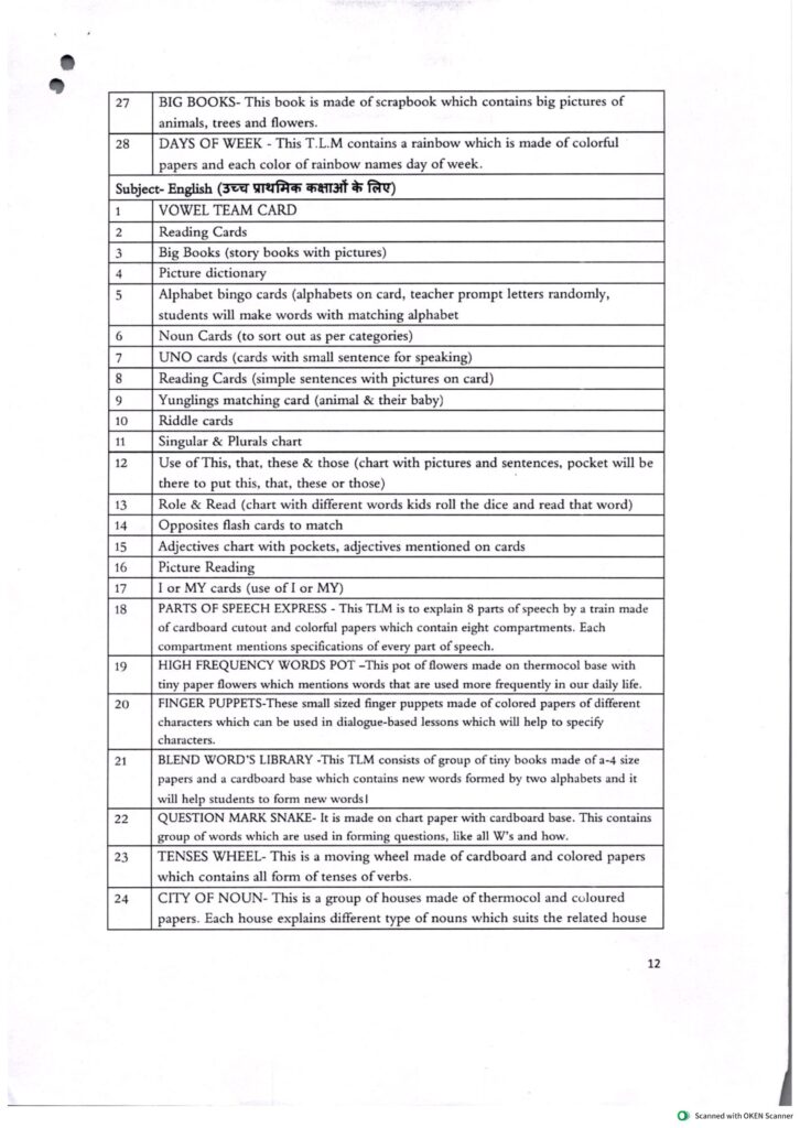 विषय : हिंदी (Hindi TLM List)