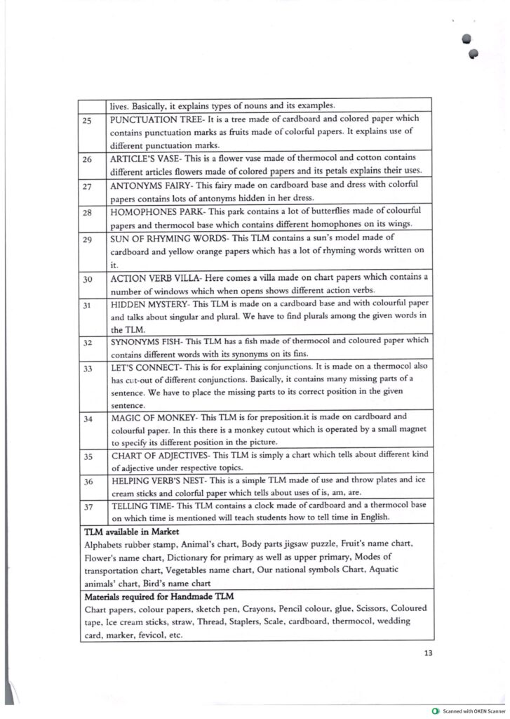 उच्च प्राथमिक कक्षाओं के लिए TLM की सुझावात्मक सूची